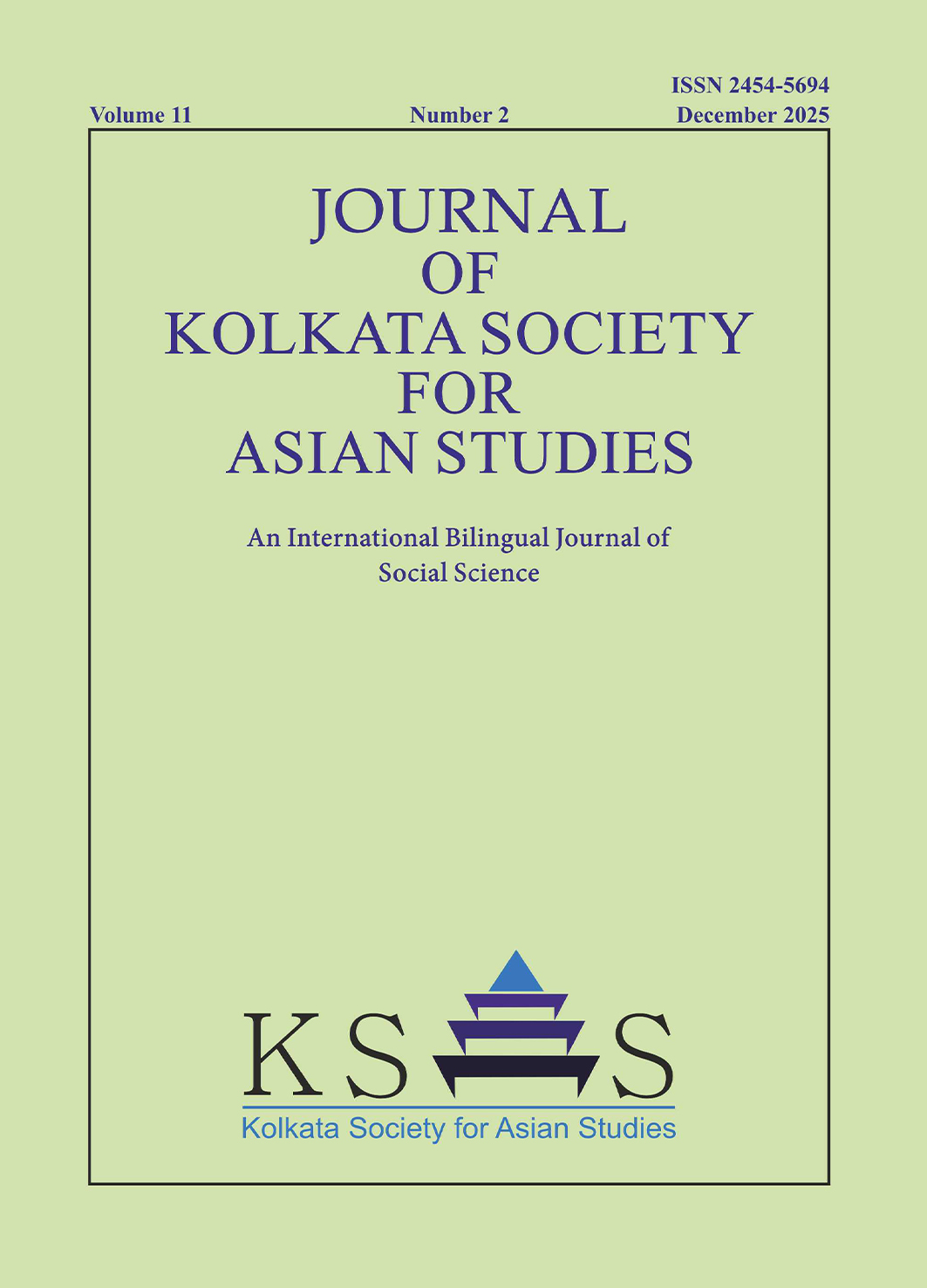 The winter issue of the journal of Kolkata Society for Asian Studies contains sixteen articles, which were submitted by authors from various academic backgrounds. These are all plagiarism tested, peer reviewed and edited wherever necessary. This volume begins with the article presented in memory of late Professor Vinoy K. Srivastava by Professor Ranjana Ray, entitled as Beliefs and practices connected with Bhumijas, a tribe in Eastern India. The paper covers the mortuary practices of the tribe Bhumij. The Bhumij has a system of mortuary practice, which shows Hinduised status of the tribe in burning of the dead body, as well as retention of the tribal custom, in megalithic burial of the ash and other remains after cremation. In this process clan of the deceased plays an important role in choosing site for megalithic burial and associated rituals. There are two articles in Bengali. One is entitled as Iswarchandra and Thakurdas: A Chronicle of a Father and his Son (পিতা-পুত্র সম্বIদ: ঠাকুরদাস বন্দ্যোপাধ্যায় এবং ঈশ্বরচন্দ্র) by Satrajit Banerjee from the department of Political Science, Bankura University, West Bengal. The paper points out that though much is written about the relationship and the guidance that Iswar Chandra Vidyasagar received from his mother, but the author has shown that Iswarchandra’s father Thakurdas Bandyopadhyay also played an important role during his formative stage in Kolkata. The other Bengali article titled as Prevalence of teenage pregnancy and motherhood in East Indian states (পূর্ব ভারতীয় রাজ্যে কৈশোর গর্ভাবস্থা এবং মাতৃত্বের ব্যাপকতা) is jointly written by Manotosh Gayen (Institute of Development Studies, Kolkata), Md Reza Kaushar Hasmi (Department of Geography, School of Earth Sciences, Central University of Karnataka) and Robi Routh (Department of Geographical and Geological Sciences, Adam Mickiewicz University, Poznan, Poland). The authors have dealt with pregnancy of teenage girls in the states of eastern India. They have done field work in the region and had identified factors responsible for this and have suggested measures for protection of the adolescence girls. Except for the two papers mentioned above, the rest of the papers are in English. The paper, A Journey for Understanding Folk Odyssey of Rural Bengal: Critical Evaluation of Pather Panchali (Song of the Road) by Bibhuti Bhushan Bandyopadhyay, pointed out simple rural, folk life through the eye of the author of the story, Pather Panchali. The paper is written by Sushil Sarkar, department of English, Kashipur Michael Madhusudan Mahavidyalaya, Purulia, West Bengal.The author discussed the folk life in the light of the famous novelist Bibhutubhusan Bandyopadhaya. Apotheosis of Motherhood: Nationalist Aspiration, Sarada Devi, and Self-Identity, by Debarati Maity, department of English, Netaji Nagar College for Women, Kolkata, delved in to the life of Sarada Devi, wife of Sri Ramakrishna Paramhansa Dev. She discussed the concept of motherhood that prevailed in India at the time of Sarada Devi and how Ma Sarada had overcome all and had established herself as eternal mother. Pratyashi Saikia Tandon of Sociology department, KamlaArya Kanya P. G. College, Mirzapur, wrote about freedom movement in Assam with focus on the efforts of Kanaklata Baruah in the article, Female Resistance and the Quest for Freedom in Assam with Special Reference to Kanaklata Baruah. In the wake of freedom movement against British in Assam, Kanaklata Baruah not only fought for freedom but even sacrificed her life.